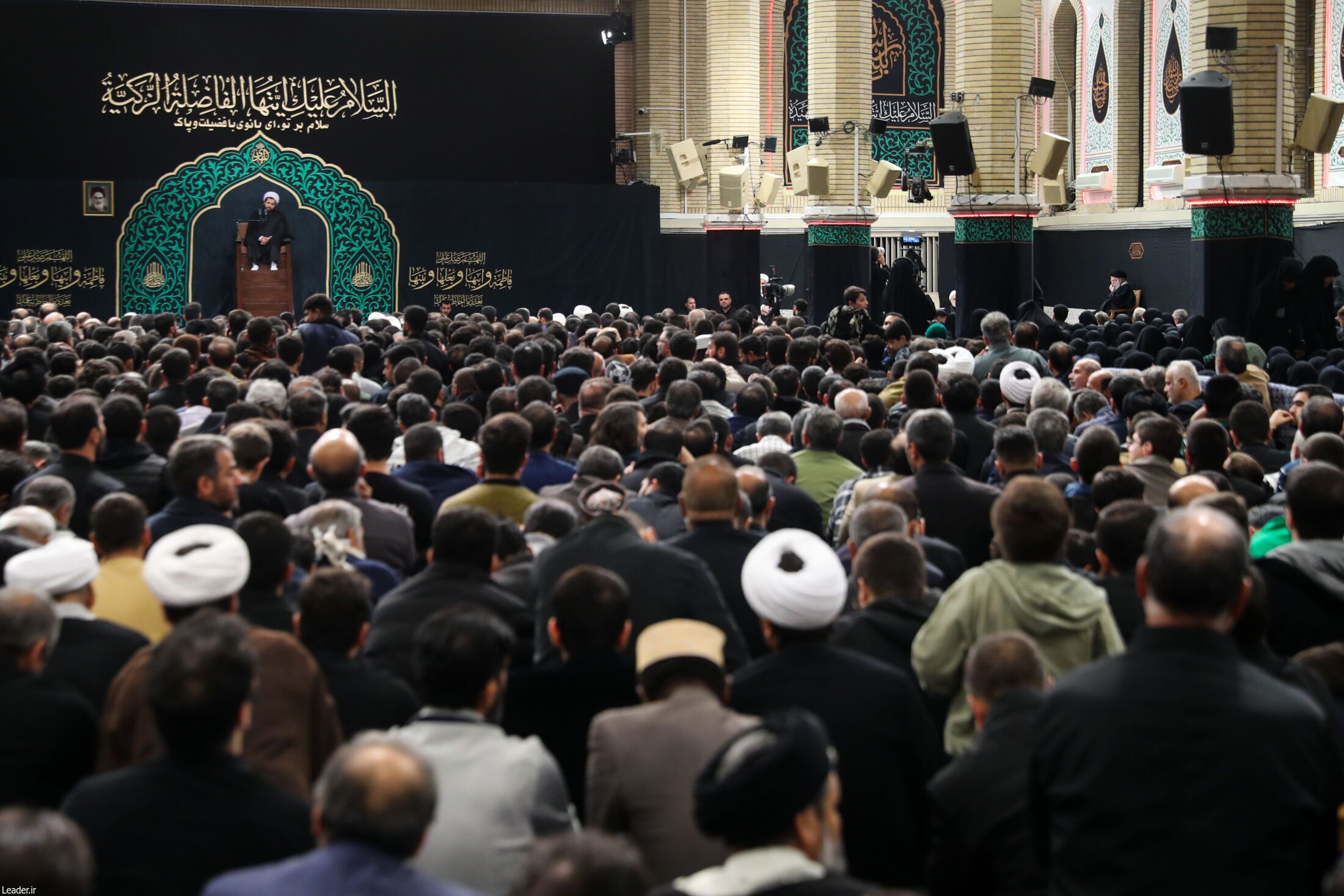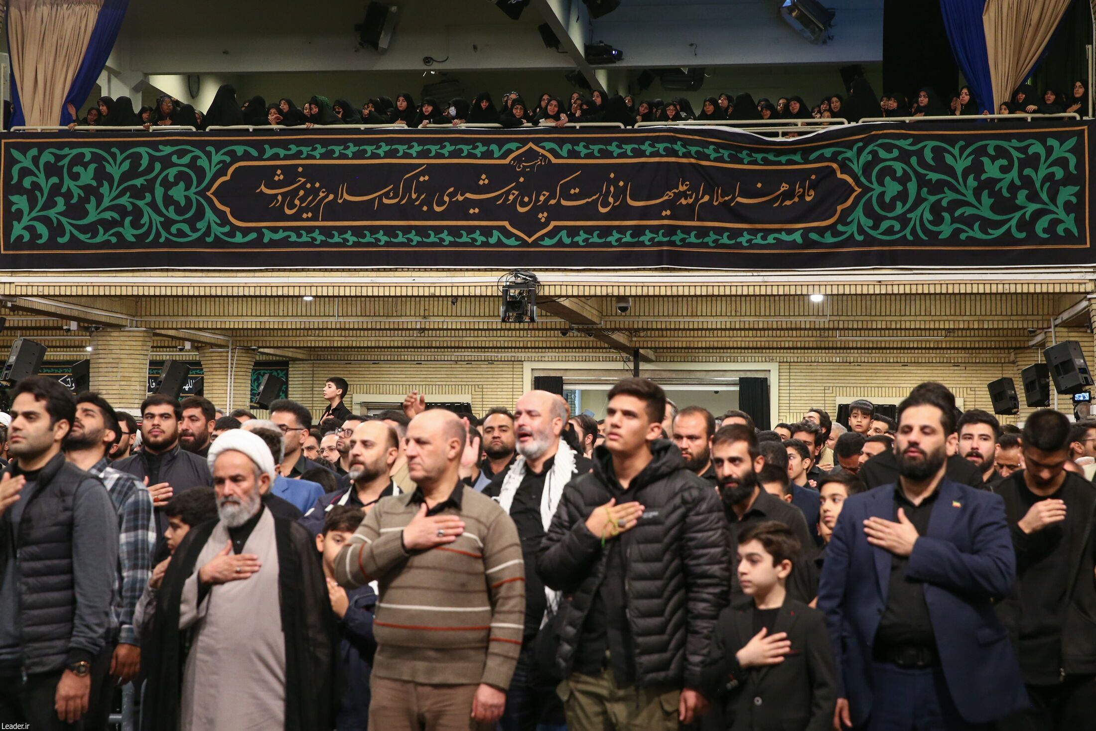 اولین شب از مراسم عزاداری ایام شهادت حضرت فاطمه‌زهرا سلام‌الله‌علیها امشب، جمعه ۳۰ آبان ۱۴۰۴ با حضور رهبر انقلاب اسلامی و هزاران نفر از قشرهای مختلف مردم در حسینیه امام خمینی(ره) برگزار شد. در این مراسم حجت‌الاسلام رحیم شرفی سخنرانی کرد و حاج سعید حدادیان به مداحی پرداخت.